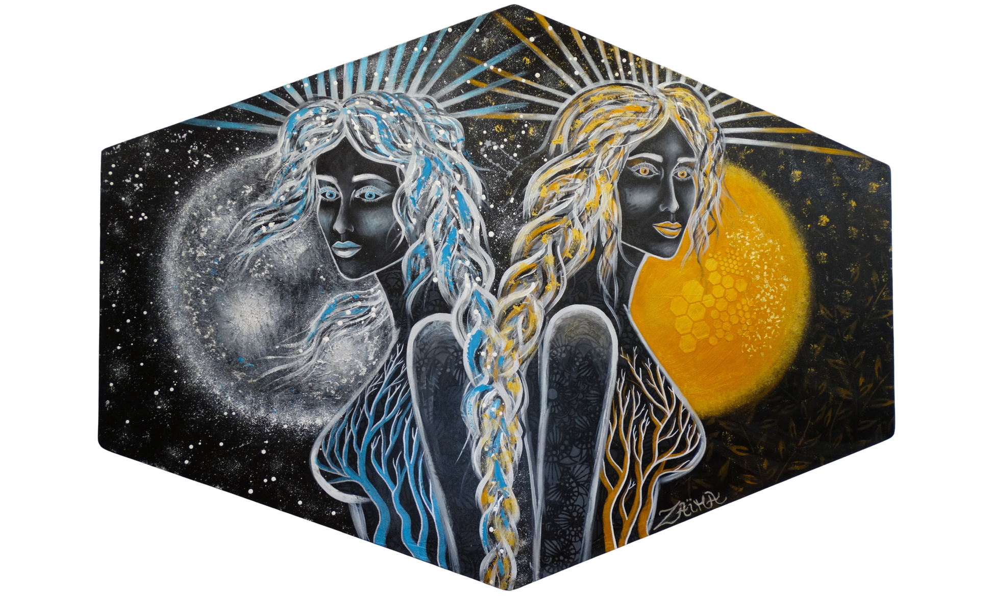 Les 2 déesses sont reliées par une seule tresse, cela signifie embrasse ta dualité interne, car elle sera présente toute ta vie.