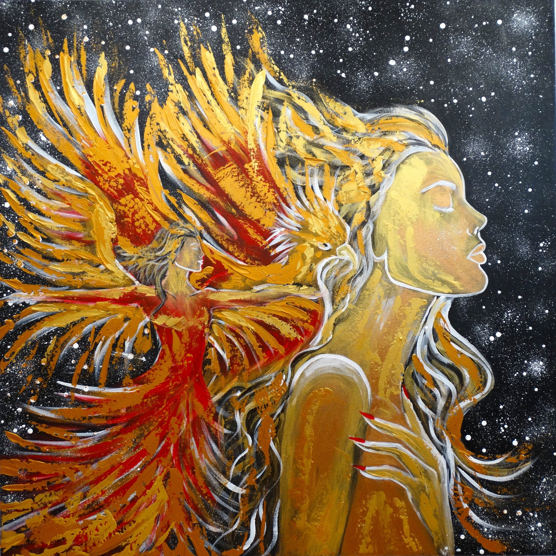 Médiums mixtes : acrylique, marqueur à l'huile, médium gel et vernis sur toile